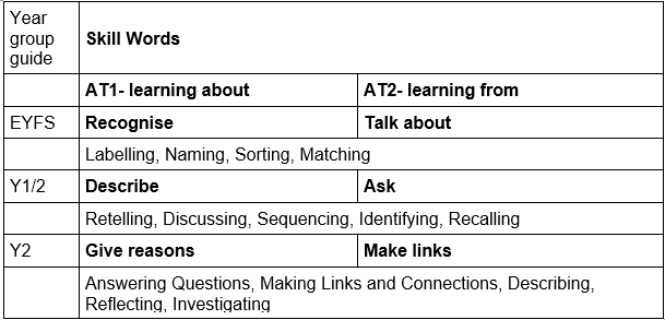 Pupils are assessed against the skills words ensuring understanding and outcomes for each focus topic.